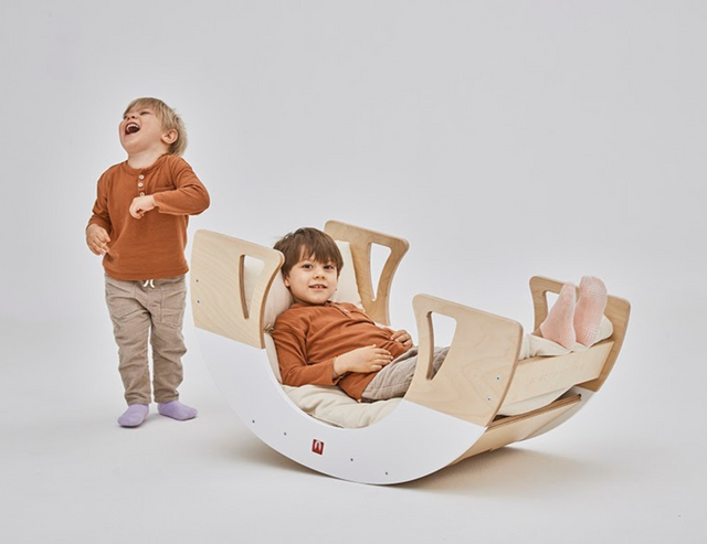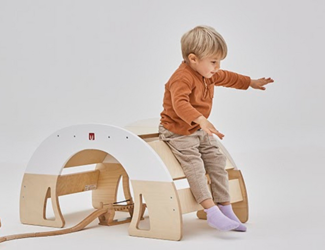 Questo straordinario prodotto permette 9 esercizi di sviluppo motorio e cognitivo, tra cui arrampicata, dondolamento, giochi di equilibrio e attività di concentrazione sulla scrivania a due sedute.